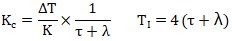 積分對象的比例增益計算公式和自衡對象類似,λ反映了閉環控制性能的快慢。λ的選擇依據和自衡對象的推導過程一樣,這里不再贅述。所以也有結論:當λ=τ時,閉環的設定值跟蹤會發生超調。這也是Lambda整定方法推薦的最強控制作用。同理當λ=2τ時,閉環設定值跟蹤不振蕩。