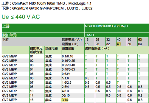 最終我們按施耐德“Complementary Technical Information”文件推薦客戶選擇NSXm塑殼斷路器作為上級斷路器,由于NSXm的過載保護整定值可調(diào),可以整定40A左右滿足總開關(guān)的過載保護要求,又可以與下級GV2ME16C在反時限區(qū)域滿足選擇性要求,一舉多得。