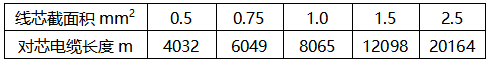 根據公式2,可以得出rmax=Ul/I=2.4/0.0583=41.14(Ω);根據公式3,可以得出不同的截面積所敷設的計算最大距離: