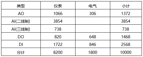假定某項目有1萬個I/O,根據之前9個項目數據統計系統I/O類型占比,系統I/O點分布如下表。