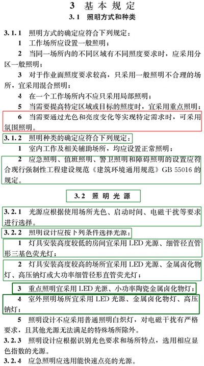 3.2.1光源使用場景中增加了電磁干擾,比如電視臺、通訊室、演播廳等場所,需要考慮燈具的電磁干擾,大家在做設計時一定要注意。