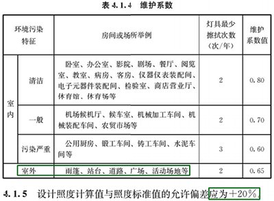 4.5條款中對室外空間使用的燈的色容差做了補充