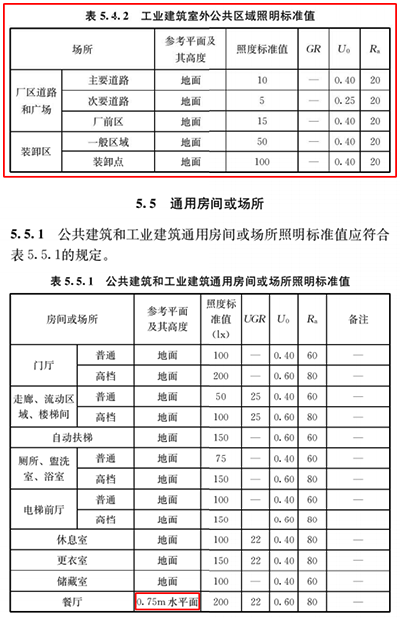 5.3.6 醫療建筑照明標準值中,病房的參考平面及其高度規定為0.75m水平面,在舊標準中為地面,其照度標準值也進行了調整,改為200lx。