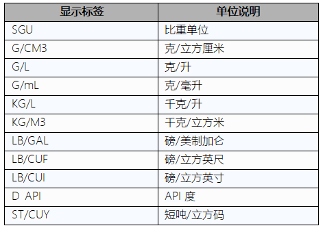 高準1700/2700系列變送器為密度測量單位提供了一組標準的測量單位。