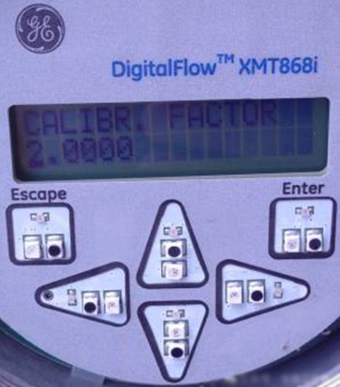 完成以上4步,流量計恢復了正常運行,但是發現超聲波流量計指示值較正常值大一倍,約為4600t/h,查看相關參數,發現參數Calibration Factor(校正因子)被設置成了2,正常情況應該為1,該參數一般用于小范圍的校準,具體步驟如下: