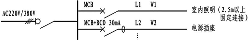 因此,Ⅱ類LED燈配電回路不需要PE線,只有相線和中性線。Ⅱ燈具由于沒有PE線,因此,無需設置剩余電流動作保護(RCD)。