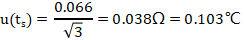 (2)溫度變送器的輸入溫度測量引入的標準不確定度分量u(ts)