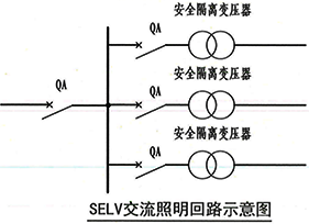 根據強制性工程建設規范《建筑電氣與智能化通用規范》GB55024-2022第4.4.3條規定,采用安全特低電壓(SELV)供電的照明回路應設置過負荷和短路保護。在圖示中有相應的示意圖加以說明,便于理解該條款。