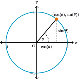 這個想法如此簡單,卻又極其深刻。在高中課程中大家了解了余弦和正弦,它們將直角三角形的角度與兩條邊長之比聯系起來。另一種理解方式是,余弦和正弦分別是繞單位圓移動的點的x坐標和y坐標。它們是人們能想到的最簡單的周期函數之一。