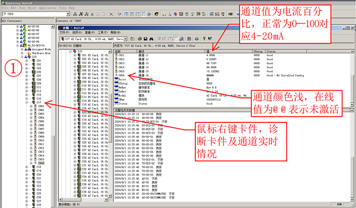 4、確認通道后,下位機組態、接線,打點測試。