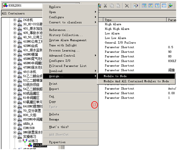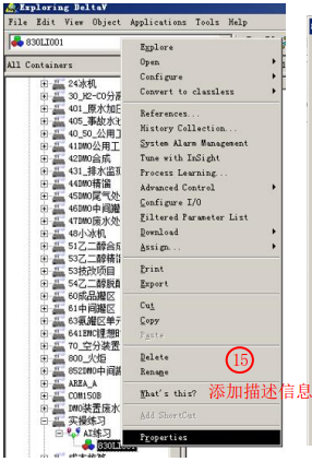 組態目標:在40_53-DCS-01控制器下新加AI點830LI001,描述為分離器液位,高高報警90,高報警80,低報警10,低低報警5。顯示在新建畫面上,畫面主題為“測試畫面”。組態完成后發布到相應操作站。