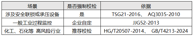若壓力表與承壓設(shè)備(如氣動執(zhí)行機構(gòu)的安全保護系統(tǒng))直接相關(guān),可能被歸類為安全附件,需強制定期檢定。