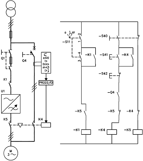 對于變頻器出線端接觸器K5和旁路接觸器K4,西門子也給了三種選型的建議: