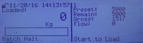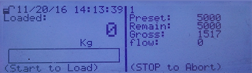 6、當批控器裝車量達到設定量后,自動關閥停止裝車;如果過程中需要停止裝車,點擊”Stop”鍵一次,暫停裝車;連續點擊”Stop”鍵兩次,則停止裝車。