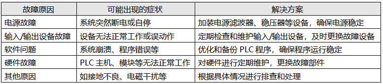 3、軟件問題:包括程序錯(cuò)誤、系統(tǒng)崩潰等,也可能導(dǎo)致PLC控制系統(tǒng)自停。