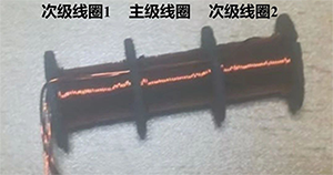 主級(jí)線圈、次級(jí)線圈1、次級(jí)線圈2,這三組線圈匝數(shù)都約為90匝,由于是手工繞制的,會(huì)存在偏差。