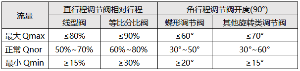 在《自動化儀表選型設計規(guī)范》HG/T20507-2014中調(diào)節(jié)閥開度推薦如下范圍: