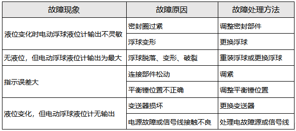 電動浮球液位計常見故障與處理
