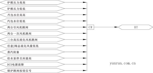 鍋爐跳閘(BT)的條件邏輯如下圖三: