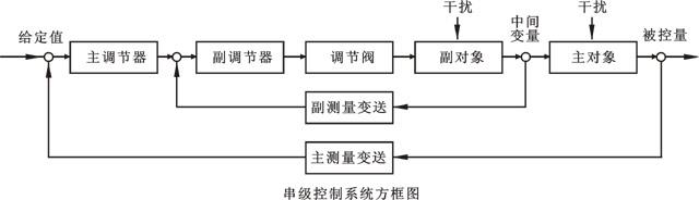 串級控制系統(tǒng)有兩個閉合回路。主控制器、副控制器串聯(lián),主控制器(單回路PID控制器)的輸出作為副控制器(外給定調(diào)節(jié)器)的給定值,系統(tǒng)通過副控制器的輸出操縱控制閥動作,實現(xiàn)對主變量的定值控制圖1。所以在串級控制系統(tǒng)中:主回路是個定值控制系統(tǒng),而副回路是個隨動系統(tǒng)。